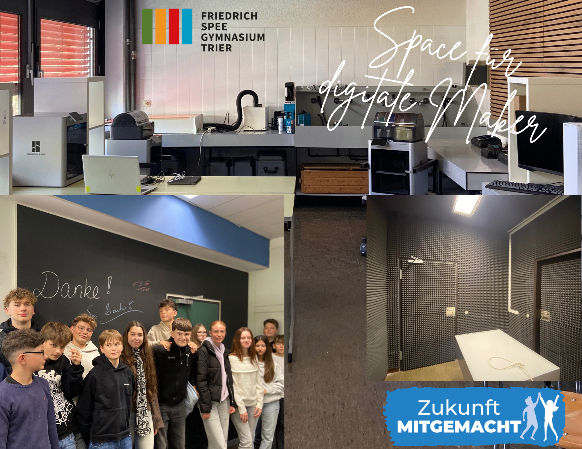 Durch die Planungen von Schülern und Lehrern, der innenarchitektonischen Planungen eines 10er-Kunst-Grundkurses und dem engagierten Einsatz von vielen Lehrern und Eltern bei zwei „Schafftagen“ im Oktober 2025 stehen die Räume der Schülerschaft zu Verfügung. Von besonderer Bedeutung sind die Räume für die Schülerinnen und Schüler des Wahlpflichtfaches „Zukunft gestalten“. In diesem Fach suchen sie sich eigene Projekte in den Grenzen der 17 Nachhaltigkeitsziele der Vereinten Nationen und setzen die Projekte um. Durch die MakerSpaces stehen ihnen dazu viele Möglichkeiten zur Verfügung.